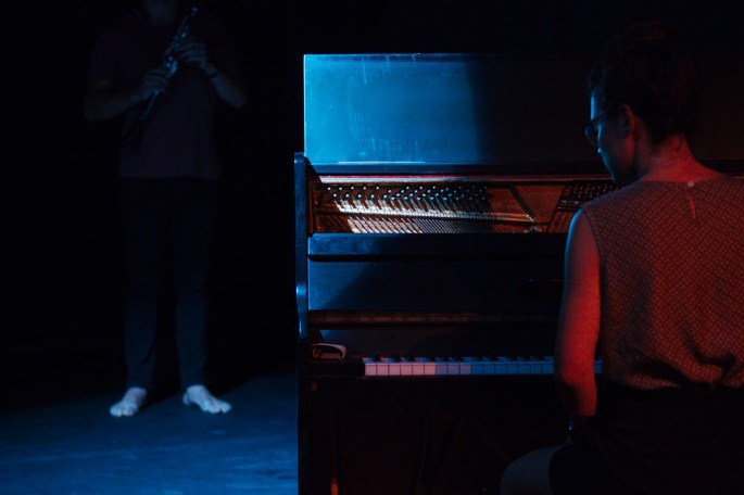 Trio: Elsa Duault – dance , Visser Liebenberg- clarinet, Lucy Strauss- viola